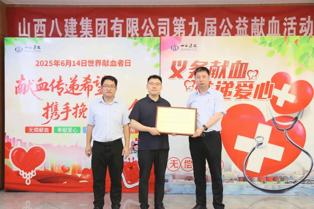 八建集團開展第九屆公益獻血活動?;顒蝇F(xiàn)場,干部職工積極響應,在專業(yè)醫(yī)護人員的指導下,有序完成血壓測量、血樣采集等流程。最終27人成功獻血9050毫升。太原市血液中心向集團贈送牌匾,對集團長期支持獻血事業(yè)表示感謝。