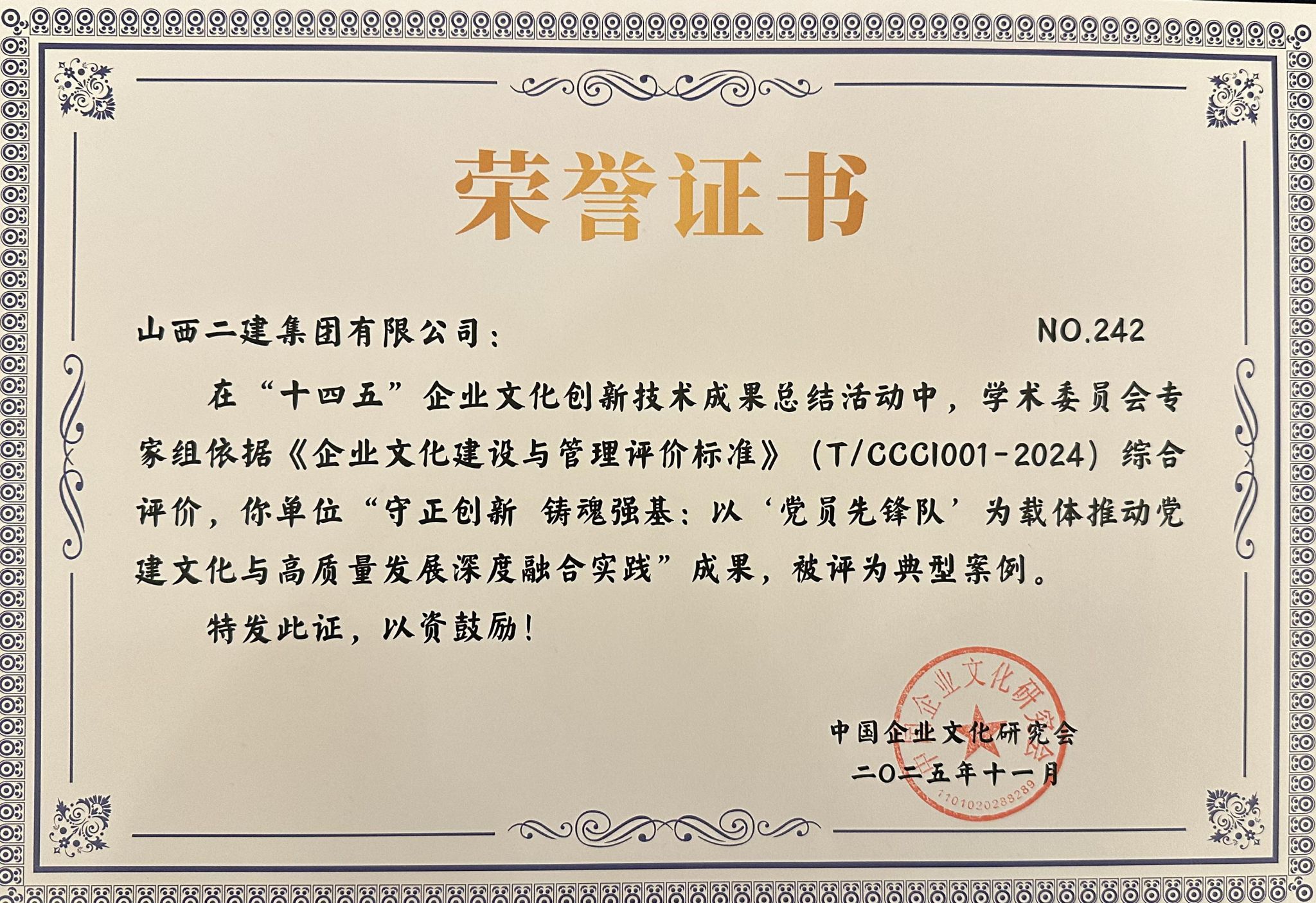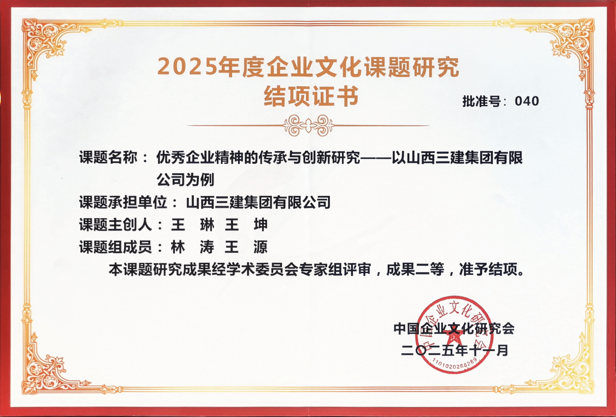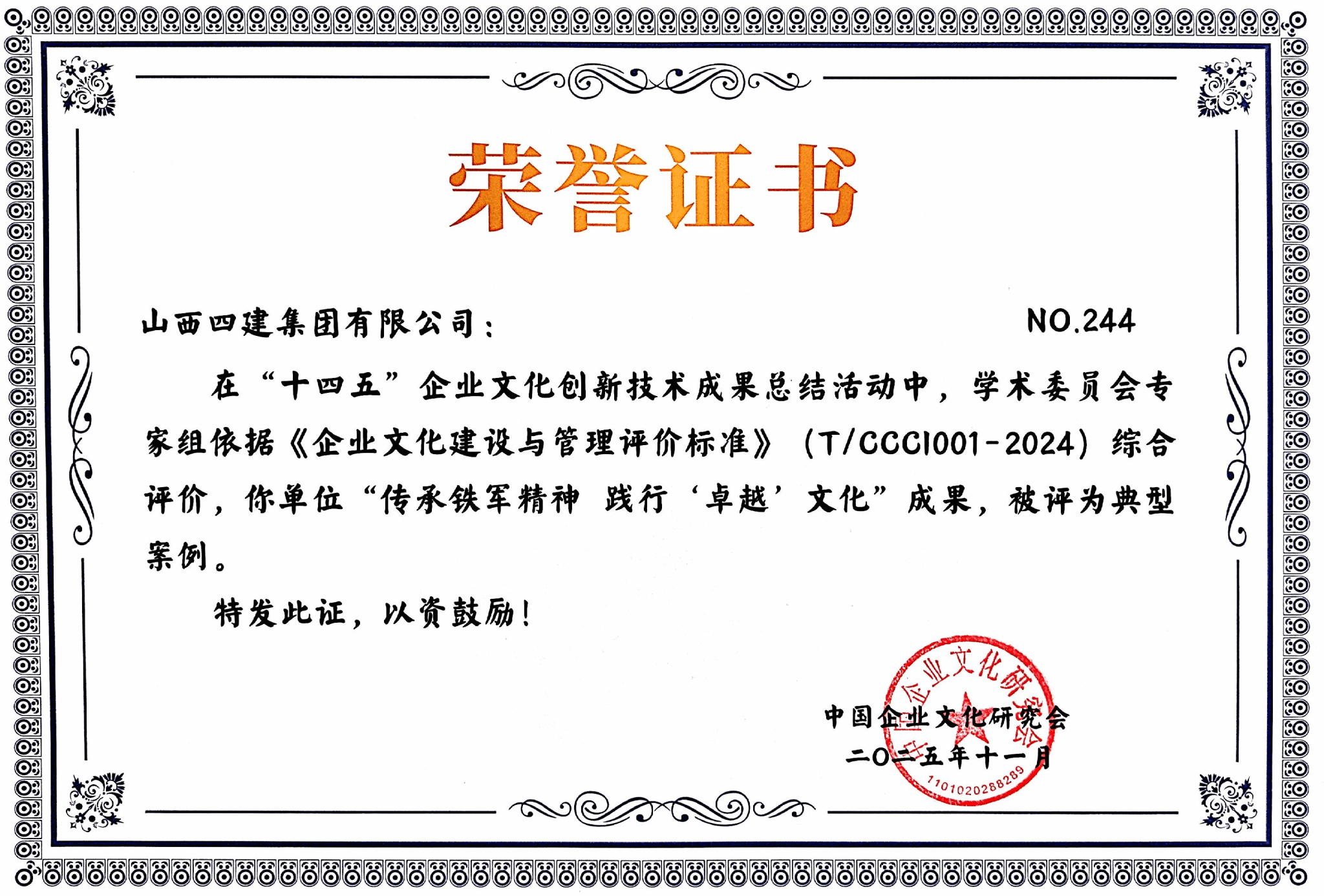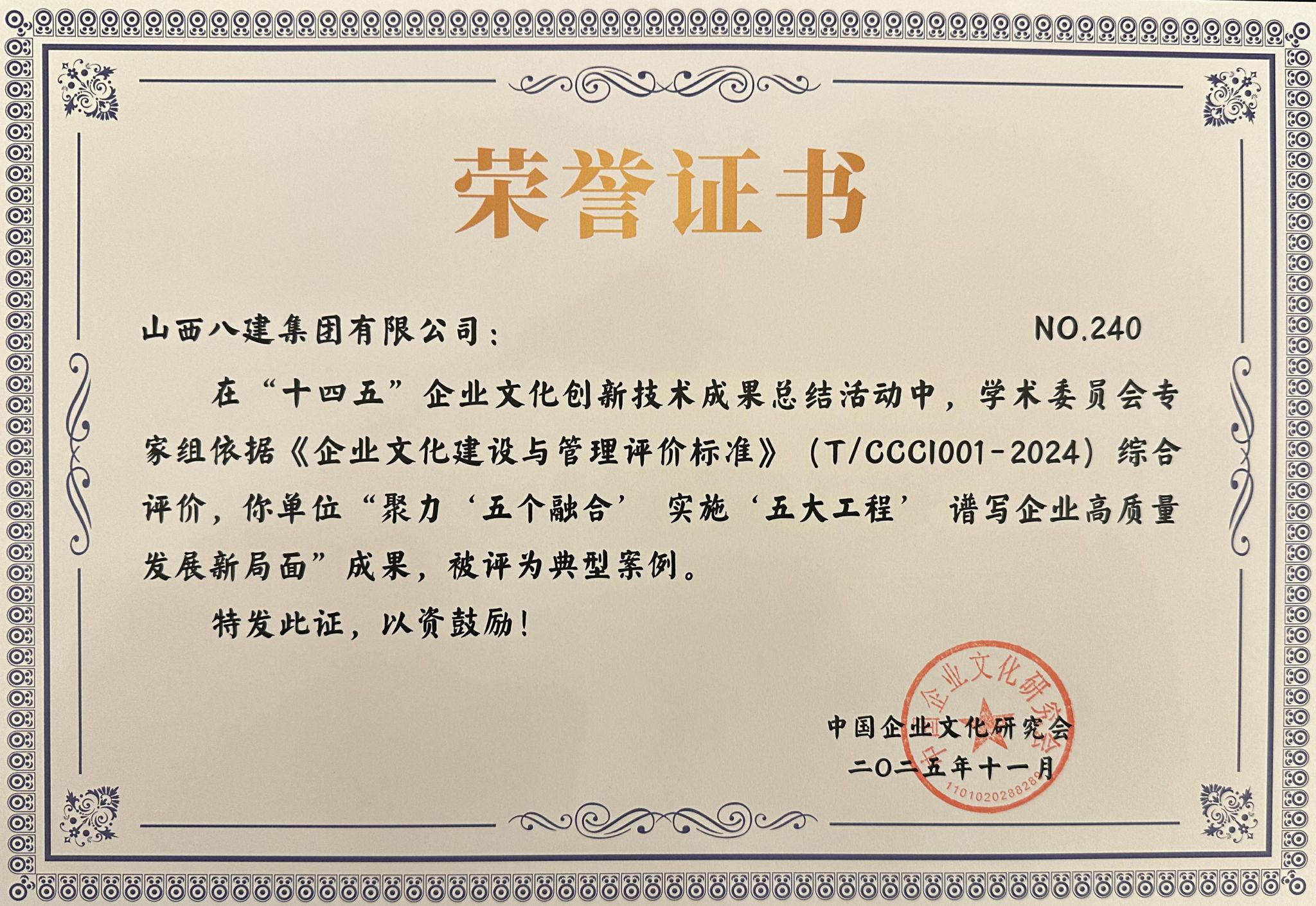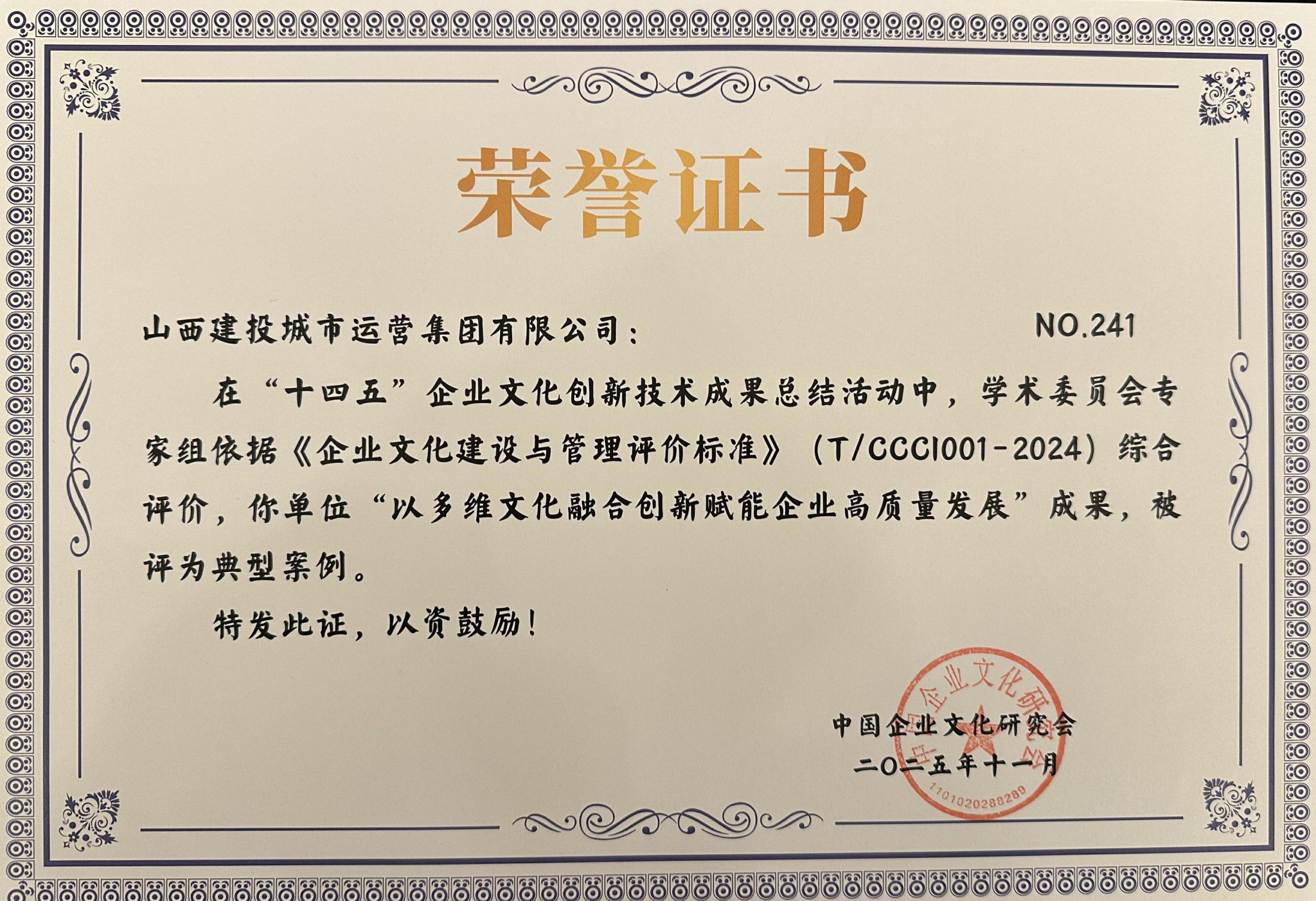 11月20日至22日,由中國企業(yè)文化研究會主辦的“系統(tǒng)回望‘十四五’全面規(guī)劃‘十五五’·促進企業(yè)文化創(chuàng)新——中外企業(yè)文化2025峰會”在上海召開。會上,山西建投榮獲“十四五”企業(yè)文化建設與管理5A級企業(yè),是山西省唯一獲評5A級企業(yè)的省屬企業(yè);集團申報的《打造“五維賦能”文化引擎 激發(fā)高質(zhì)量發(fā)展內(nèi)生動力》榮獲“十四五”企業(yè)文化創(chuàng)新技術成果典型經(jīng)驗。