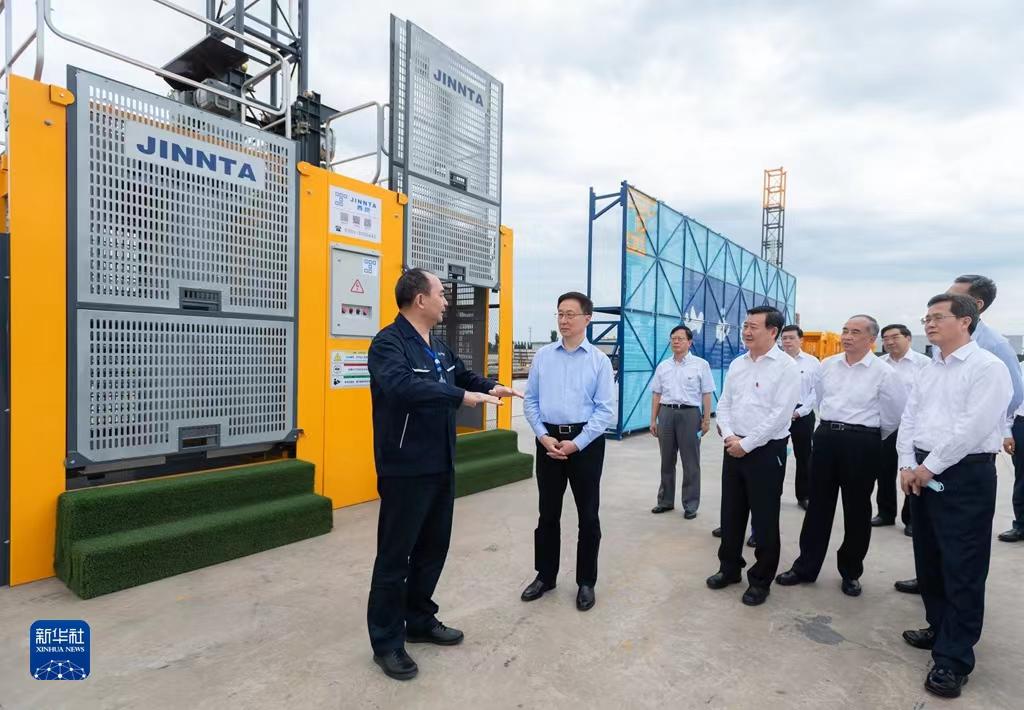 6月28日,中共中央政治局常委、國務院副總理韓正到山西太原調研,主持召開煤炭清潔高效利用專題座談會并講話。這是韓正走進山西建筑產業(yè)現(xiàn)代化瀟河園區(qū),察看綠色智能建筑裝備制造基地建設情況。新華社記者 翟健嵐 攝