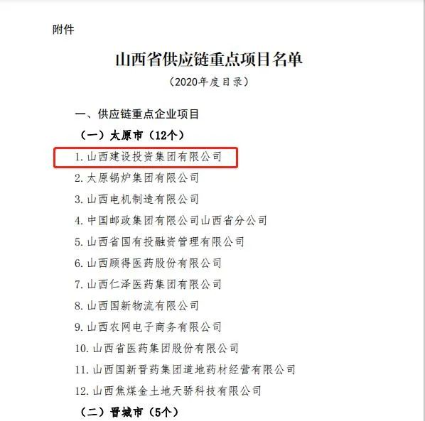 近日,省商務(wù)廳正式公示了2020年度山西省供應(yīng)鏈重點(diǎn)培育項(xiàng)目名單,集團(tuán)成為入選的28個(gè)項(xiàng)目之一。