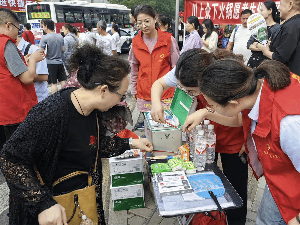 在考點(diǎn)外志愿服務(wù)站,為莘莘學(xué)子精心準(zhǔn)備“愛心文具包”、干濕紙巾、礦泉水及藿香正氣水、創(chuàng)可貼、碘伏、酒精等常用物品。