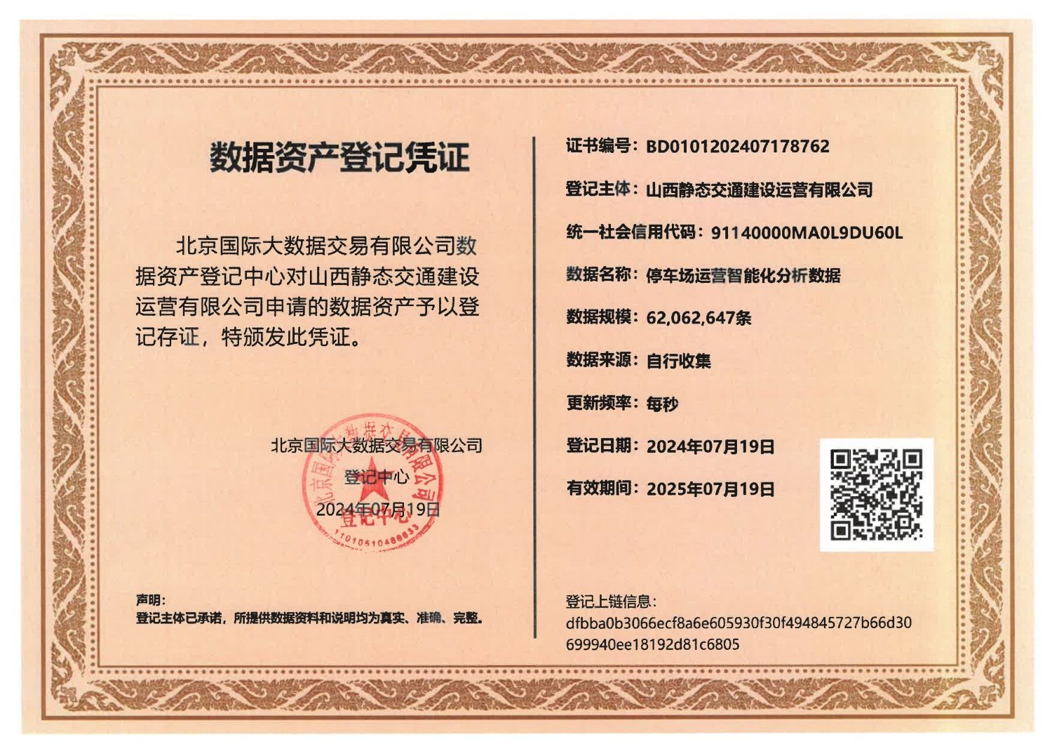近日,山西建投集團(tuán)下屬企業(yè)靜態(tài)交通公司在北京國(guó)際大數(shù)據(jù)交易所完成停車(chē)場(chǎng)運(yùn)營(yíng)智能化分析數(shù)據(jù)資產(chǎn)登記,并完成數(shù)據(jù)資產(chǎn)入表,成為山西國(guó)資系統(tǒng)首個(gè)數(shù)據(jù)資產(chǎn)入表企業(yè),實(shí)現(xiàn)山西靜態(tài)交通領(lǐng)域數(shù)據(jù)資產(chǎn)入表零的突破。