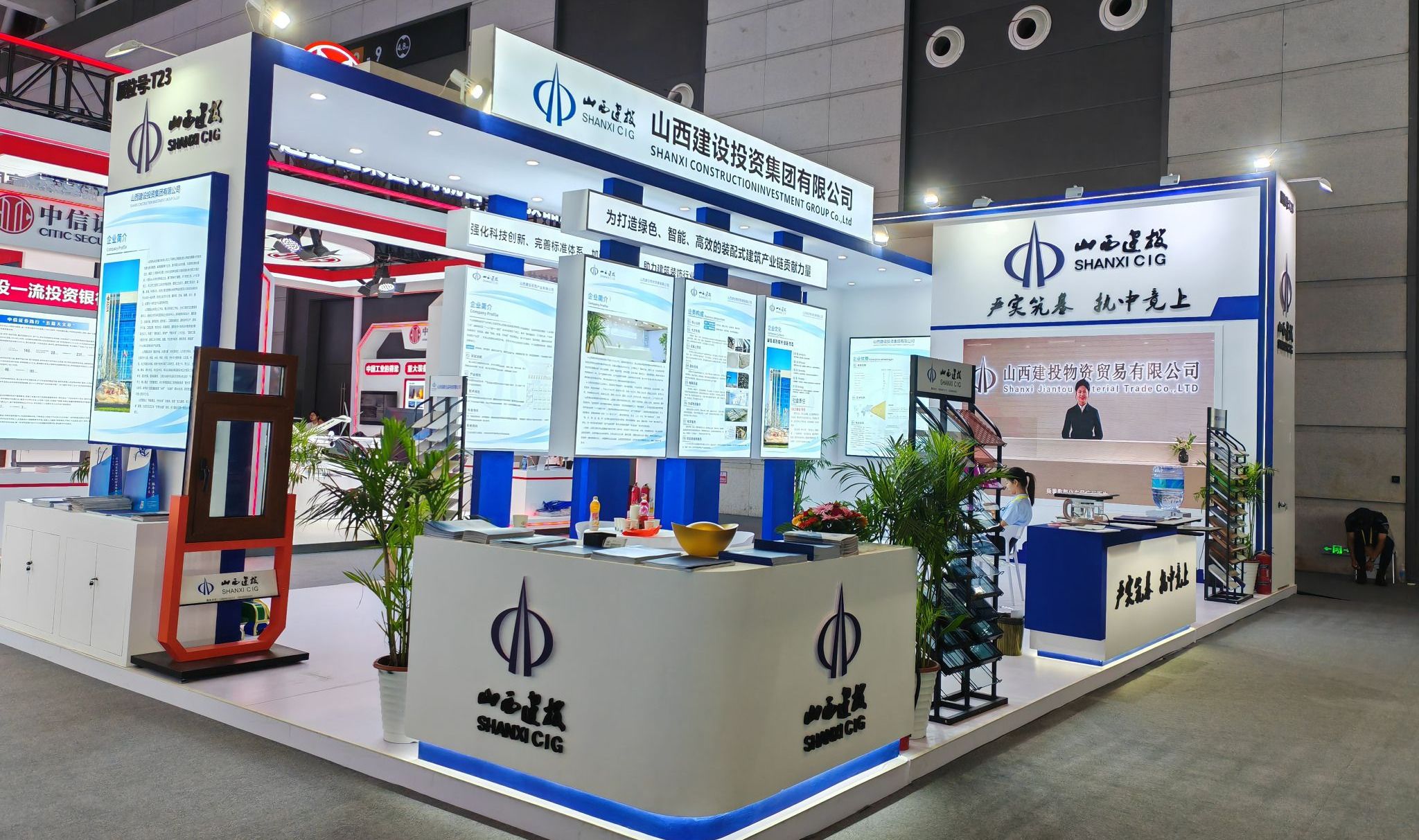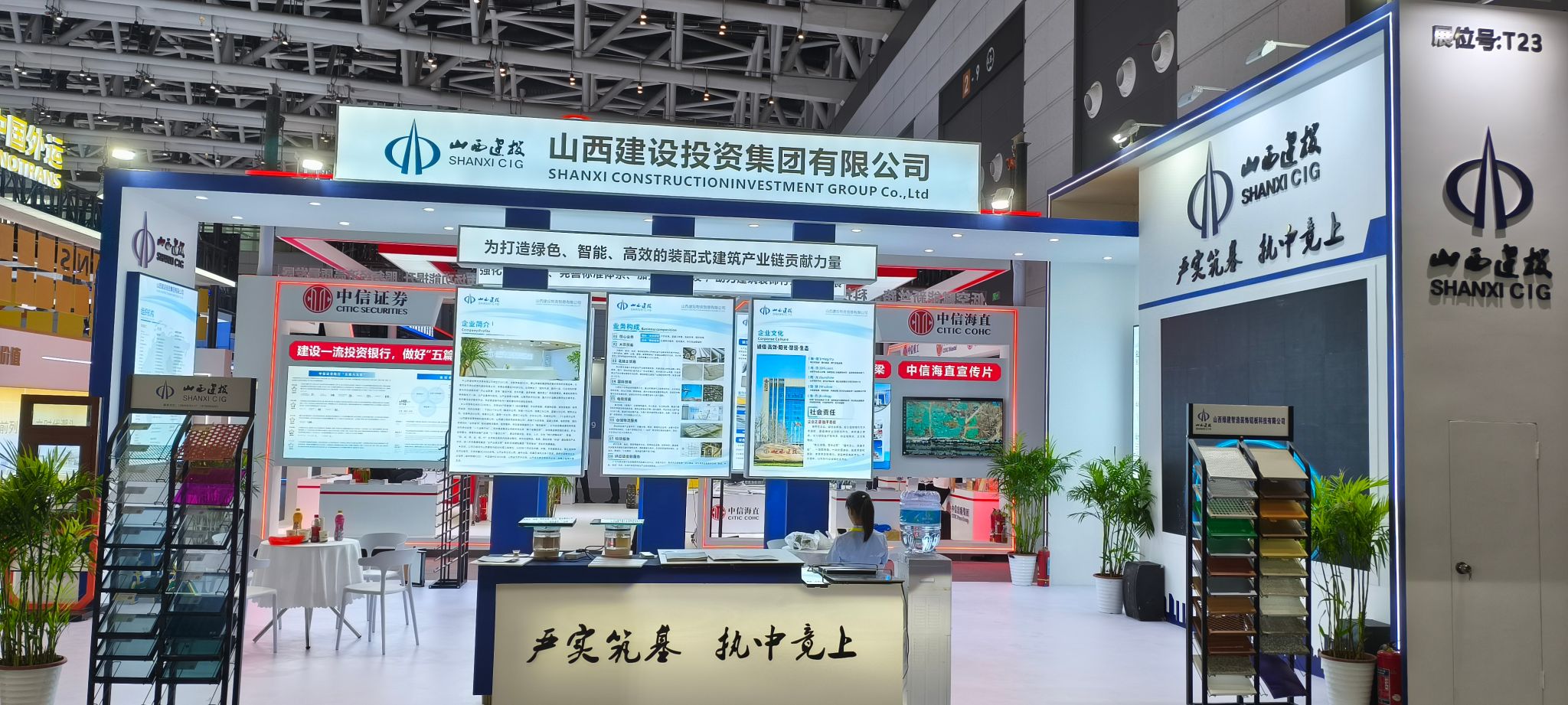 展會現(xiàn)場,建投集團(tuán)以圖文、影像、宣傳冊等形式,全方位呈現(xiàn)了企業(yè)整體形象和全產(chǎn)業(yè)鏈優(yōu)勢,多維度展示了在物資貿(mào)易、裝配式綠色建材等領(lǐng)域的發(fā)展成果和生產(chǎn)產(chǎn)品。展廳吸引了眾多專家、客商、嘉賓駐足參觀、咨詢交流。