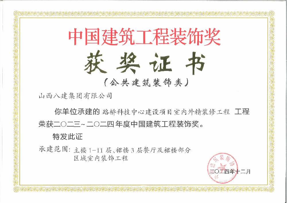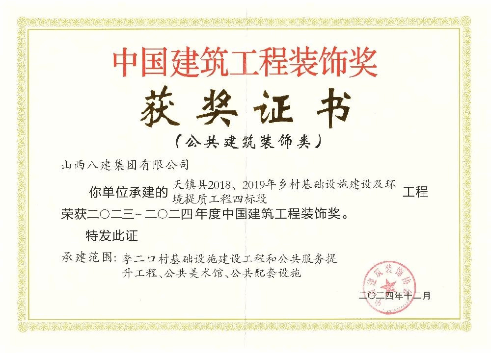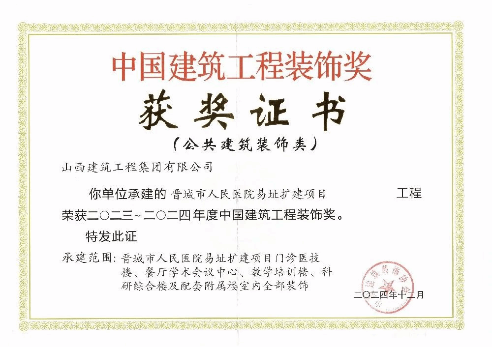在中國建筑裝飾協(xié)會九屆四次理事會九屆六次常務理事會暨中國建筑裝飾協(xié)會成立40周年大會上,建投集團承建的13個項目榮獲2023年度中國建筑工程裝飾獎。此外,在中國化工建設企業(yè)協(xié)會公布的2024年化工建設工程質(zhì)量評價結(jié)果(化學工業(yè)優(yōu)質(zhì)工程獎)中建投集團承建的3個項目榜上有名。