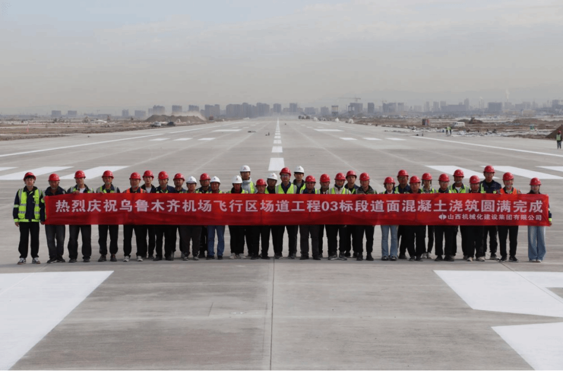 近日,山西太原武宿國(guó)際機(jī)場(chǎng)第二跑道全線(xiàn)貫通。該項(xiàng)目是國(guó)家民航局“十四五”重點(diǎn)項(xiàng)目,跑道由山西建投機(jī)械化集團(tuán)承建,建設(shè)標(biāo)準(zhǔn)為長(zhǎng)3600米、寬45米,并配套建設(shè)相應(yīng)的滑行道系統(tǒng)。項(xiàng)目團(tuán)隊(duì)克服了不停航施工、地下管線(xiàn)復(fù)雜、地基處理難度大等困難,建設(shè)高峰期投入設(shè)備1000余臺(tái)(套),勞務(wù)作業(yè)人員902人,單日主材進(jìn)貨量達(dá)13855噸,單日實(shí)現(xiàn)混凝土道面產(chǎn)量3100方,不斷刷新項(xiàng)目單日施工產(chǎn)值新紀(jì)錄,圓滿(mǎn)完成了百日攻堅(jiān)會(huì)戰(zhàn)目標(biāo),并如期實(shí)現(xiàn)既定目標(biāo)。