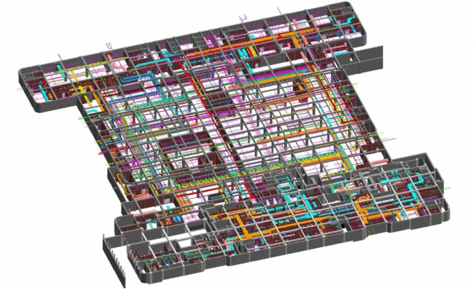 項目團隊充分發(fā)揮EPC總承包的全過程管控優(yōu)勢,在設(shè)計階段即實施精益管理創(chuàng)效。通過組建“設(shè)計+施工”聯(lián)合工作組,運用BIM技術(shù)開展全專業(yè)協(xié)同設(shè)計,累計優(yōu)化解決圖紙問題近200處,實現(xiàn)設(shè)計施工一體化融合,直接降低施工變更成本1.3%,縮短工期26天。針對醫(yī)療建筑特有的復雜機電系統(tǒng)(涵蓋給排水、消防、智能化、醫(yī)療氣體等9大專業(yè)),采用“BIM+模塊化”施工策略,先通過三維激光掃描建立實景模型,再運用BIM技術(shù)進行管線綜合排布優(yōu)化,最終形成裝配式施工方案。該方案使管綜凈空提升0.6米,管線交叉點減少12.5%,實現(xiàn)有限空間內(nèi)各系統(tǒng)的高效集成與藝術(shù)化呈現(xiàn),提高機電工程一次安裝合格率。