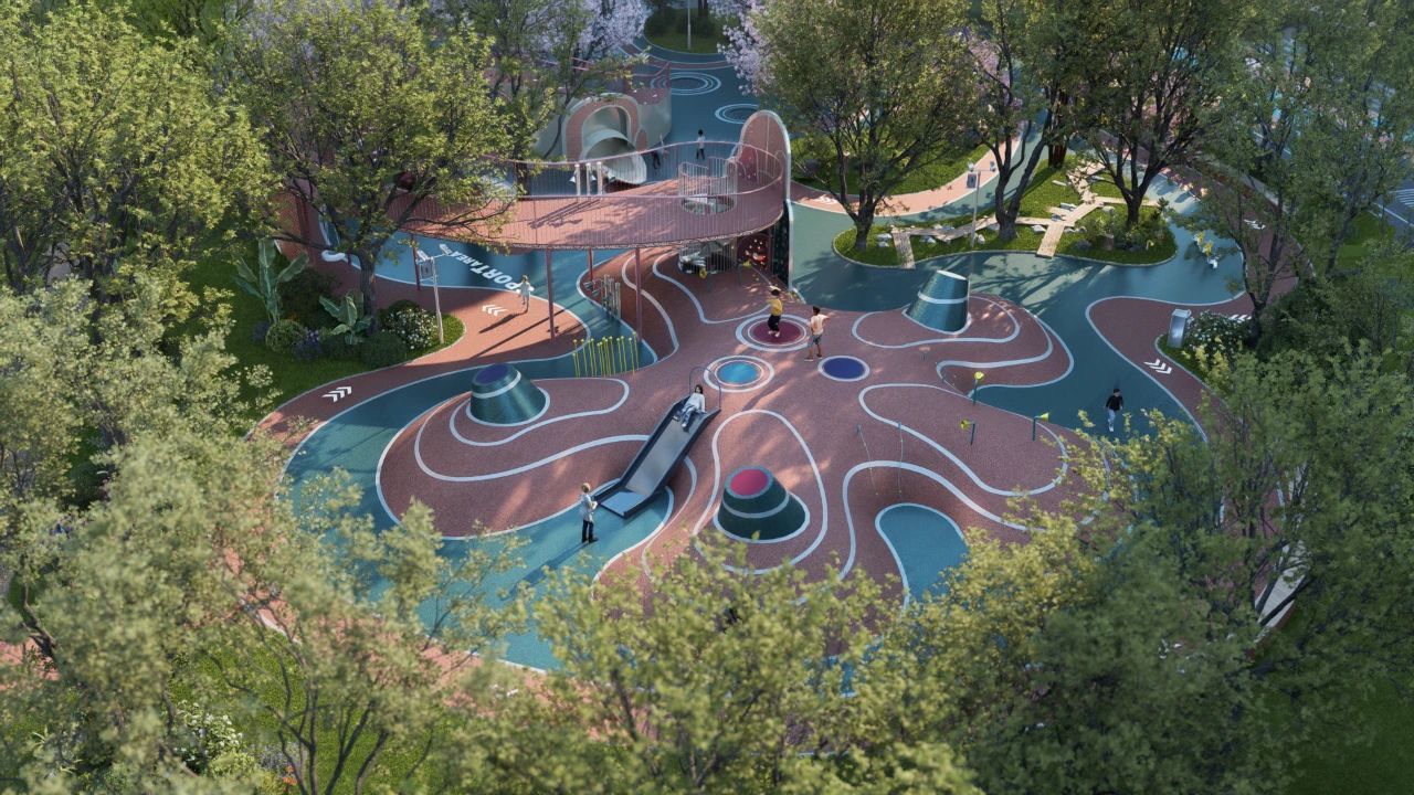 項(xiàng)目精心構(gòu)建“一軸三院十二境”的公共空間格局,一條景觀主軸串聯(lián)起主題庭院及豐富景觀節(jié)點(diǎn),融入約1050平方米的全齡兒童樂園、約590平方米的自然科普課堂及約1030米的林下健身步道等全齡化功能設(shè)施。歸家動(dòng)線設(shè)計(jì)將晉派建筑的莊重與江南園林的雅致完美結(jié)合,形成“晉韻吳風(fēng)”的獨(dú)特風(fēng)格。從北方對(duì)稱布局的入口空間,到融入月洞門、曲水回廊的江南元素,整個(gè)動(dòng)線既保持傳統(tǒng)禮序的儀式感,又增添自然靈動(dòng)的詩意氛圍,讓歸家成為一場(chǎng)穿越南北的文化體驗(yàn)。