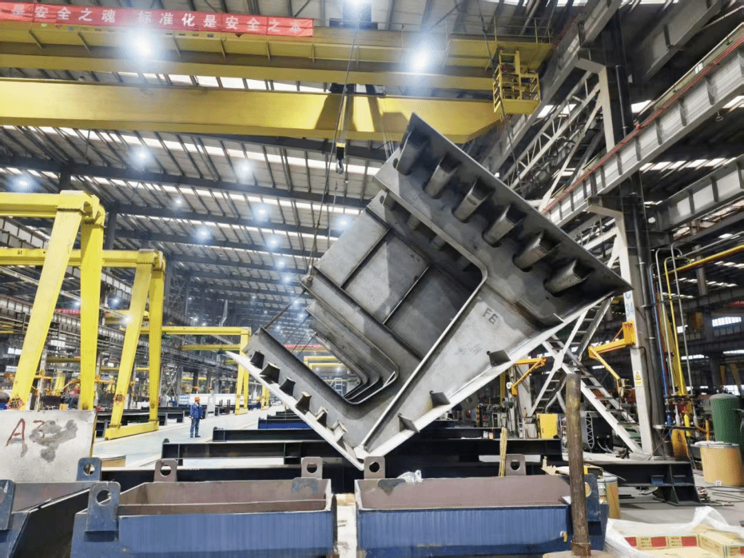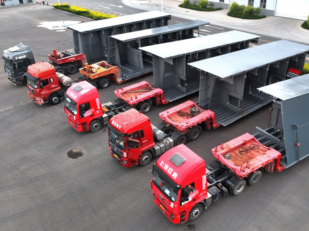 這批塔筒單套總高140米,采用6段式高精度模塊化設計,法蘭最大直徑達5.65米,16套總重量約8000噸,相當于約6000輛家用轎車的總重量。龐大尺寸與重量背后,是對質量零偏差與交付零延誤的高標準要求。