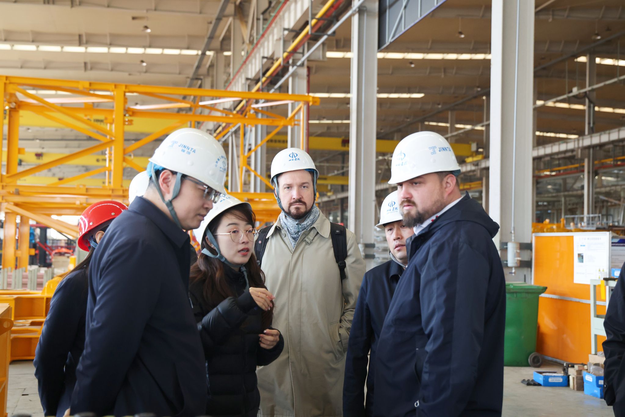 在智能化聯(lián)合廠房,俄羅斯UM公司客商參觀了塔式起重機(jī)片式標(biāo)準(zhǔn)節(jié)智能化生產(chǎn)線和智能化涂裝生產(chǎn)線,了解了專業(yè)化、綠色化生產(chǎn)流程。在東廣場(chǎng),觀摩了建筑機(jī)器人系列產(chǎn)品,體驗(yàn)了動(dòng)臂塔機(jī)和塔式起重機(jī)遠(yuǎn)程遙控駕駛系統(tǒng)。