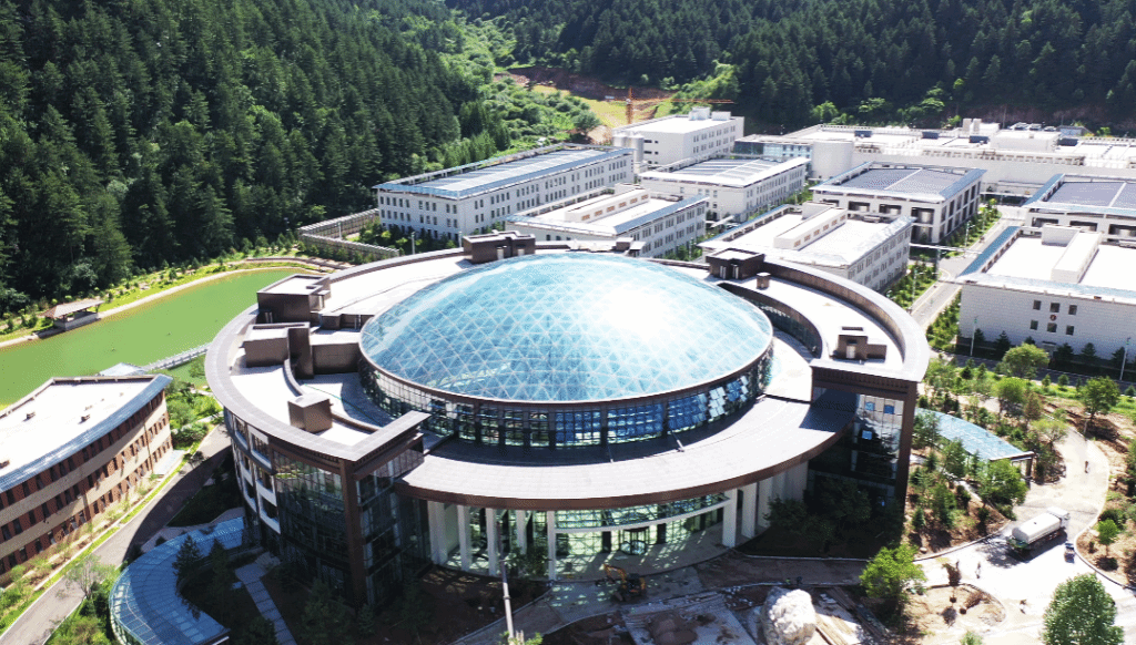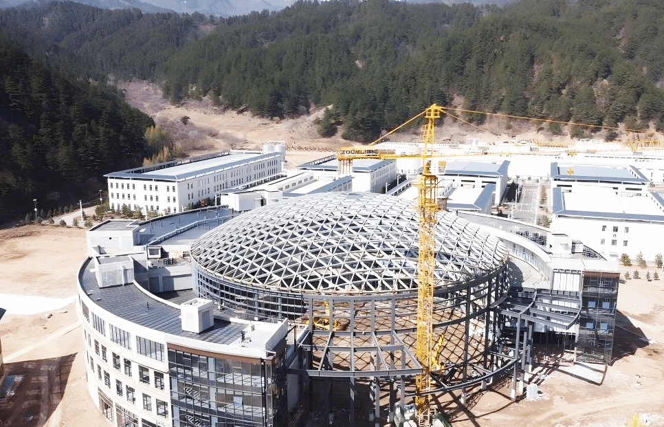 針對現(xiàn)場安裝條件,團隊創(chuàng)新采用頂升方案將網(wǎng)架頂至屋面標(biāo)高,該工藝在鋁合金單殼結(jié)構(gòu)中屬國內(nèi)首次應(yīng)用。相關(guān)成果《大跨度鋁合金球面網(wǎng)殼精益制造及頂升安裝關(guān)鍵技術(shù)研究》榮獲華夏建設(shè)科學(xué)技術(shù)獎,經(jīng)山西省鋼結(jié)構(gòu)協(xié)會鑒定,“成果整體達到國際先進水平,鋁合金單層球殼頂升安裝技術(shù)達到國際領(lǐng)先水平?!边@頂閃耀山林的精品穹頂,不僅是建筑美學(xué)的呈現(xiàn),更彰顯了集團以技術(shù)創(chuàng)新“開創(chuàng)未來”的底氣。