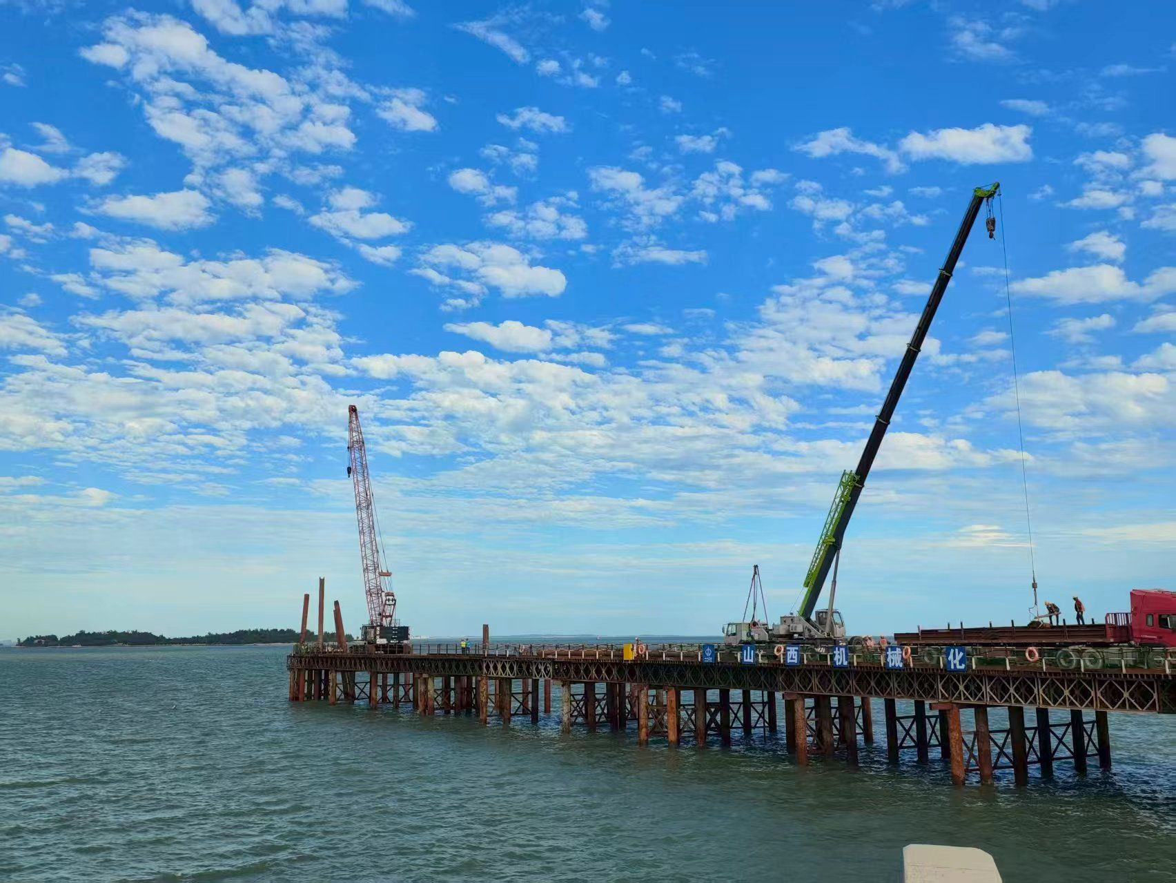 海上燈光棧橋作業(yè)中,項(xiàng)目團(tuán)隊(duì)創(chuàng)新運(yùn)用BIM建模與數(shù)字紅外線測(cè)距儀配合,在岸上遠(yuǎn)距離精準(zhǔn)測(cè)放定位每一根鋼管樁,既保障放線精度又確保人員安全;面對(duì)深海地質(zhì)復(fù)雜、潮汐變化等挑戰(zhàn),通過(guò)分層鉆芯取樣研判巖層性質(zhì),依托全護(hù)筒鋼圍堰保障海上灌注樁質(zhì)量;成功立項(xiàng)《機(jī)場(chǎng)海上引導(dǎo)航空器進(jìn)近燈光棧橋樁基綜合施工技術(shù)研究》課題,《海上燈光棧橋施工平臺(tái)》發(fā)明專利、《一種海上施工棧橋裝配式護(hù)欄裝置》《一種海上平臺(tái)打樁用定位裝置》實(shí)用新型專利獲國(guó)家知識(shí)產(chǎn)權(quán)局受理,填補(bǔ)了海上機(jī)場(chǎng)施工技術(shù)空白。