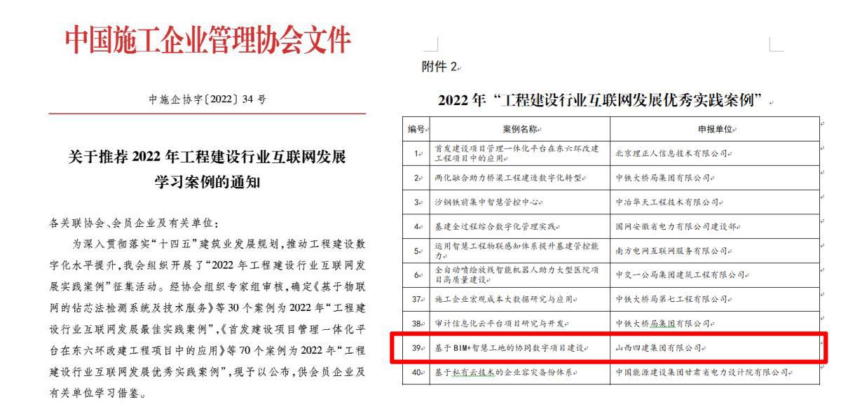 同時,該案例還獲評中施企協(xié)2022年“工程建設行業(yè)互聯(lián)網(wǎng)發(fā)展優(yōu)秀實踐案例”,被中施企協(xié)推薦為學習案例。
