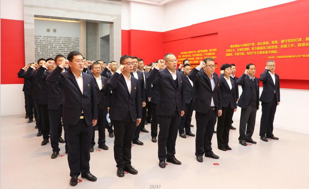 在講解員的引導(dǎo)下,全體人員走進(jìn)“牢記初心使命”黨風(fēng)廉政教育大型主題展,依次參觀“時(shí)代叩問、初心如磐”“利劍高懸、知畏知止”“崇德修身、治本之道”等展區(qū),重溫黨的百年奮斗和自我革命歷程,深刻認(rèn)識(shí)習(xí)近平總書記關(guān)于全面從嚴(yán)治黨戰(zhàn)略方針的重要論述。隨后,面向鮮紅的中國(guó)共產(chǎn)黨黨旗,觀展同志舉起右拳,重溫入黨誓詞,鏗鏘有力的宣誓聲響徹大廳。