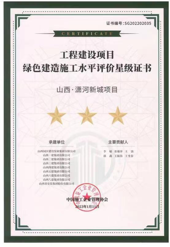日前,中國施工企業(yè)管理協(xié)會發(fā)布《關(guān)于公布2022年第二批工程建設(shè)項(xiàng)目綠色建造施工水平評價(jià)結(jié)果的通知》,山西·瀟河新城榮獲“工程建設(shè)綠色建造施工水平三星評價(jià)”。