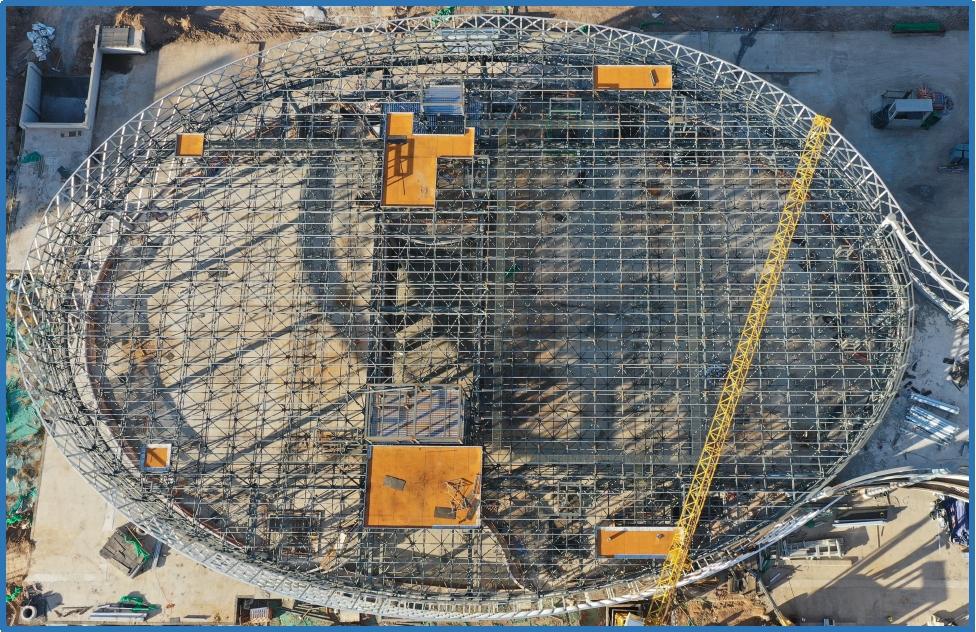 山西杏花村汾酒廠股份有限公司銷售中心施工項目是一項綜合性智能化大型公共建筑工程,是汾酒集團打造“具有文化力、內(nèi)活力、競爭力、影響力強勢品牌”的窗口工程,是傳播汾酒好口碑、塑造汾酒好形象的重要載體。項目總建筑面積為45.67萬平米,總建筑高度為89.3米,主體結(jié)構(gòu)類型為鋼框架中心支撐結(jié)構(gòu)體系,裝配率達87%。樓板部分采用鋼筋桁架樓承板,網(wǎng)架采用正放四角錐網(wǎng)格,節(jié)點采用焊接空心球,主樓(B區(qū))鋼結(jié)構(gòu)跨度12.3米,梁最大跨度為10米,球形網(wǎng)架最大跨度39.6米。
