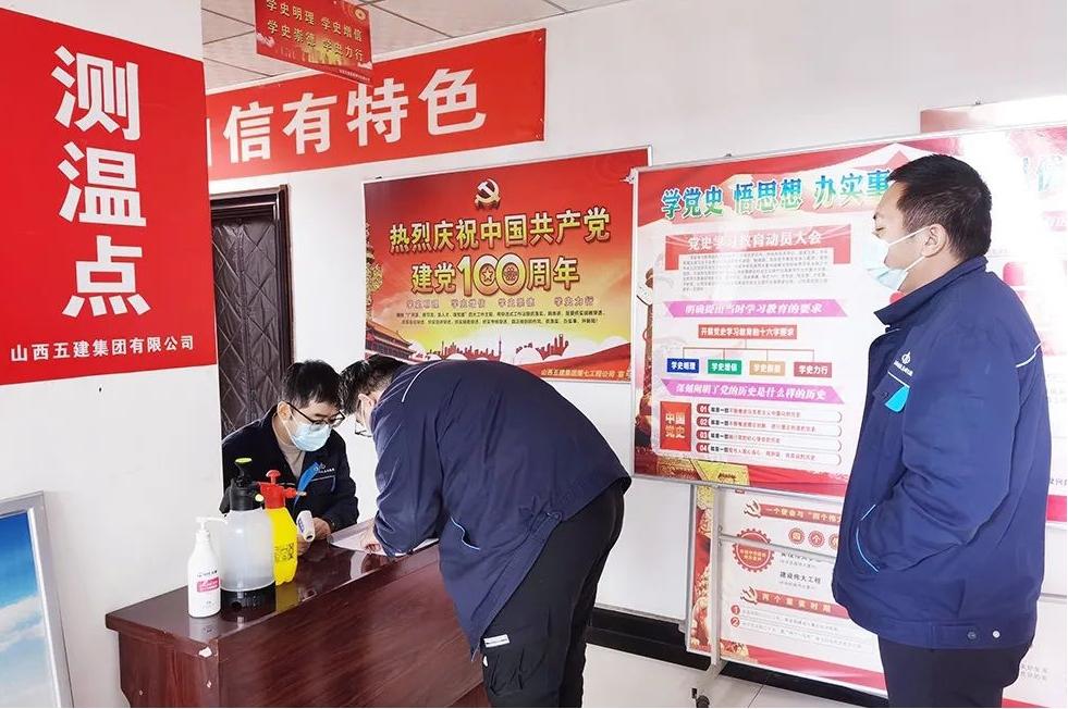 項目部召開復工復產(chǎn)疫情防控工作會議,明確分工、制定方案;設(shè)立專用房間用于臨時隔離和醫(yī)學觀察場所,做好物資儲備;嚴格落實項目部入口測溫掃碼、佩戴口罩等防控措施;對辦公區(qū)域、現(xiàn)場、餐廳、宿舍等區(qū)域進行全面消殺。
