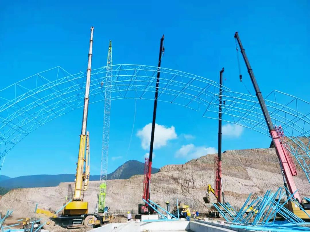 近日,公司承建的印尼金瑞年產(chǎn)260萬噸焦化項(xiàng)目焦棚球形網(wǎng)架起步軸吊裝拼接成功。