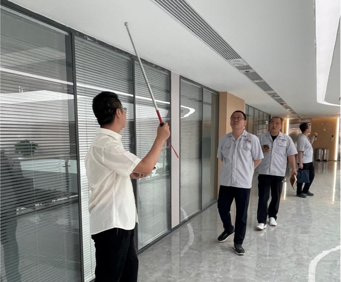 為提升項(xiàng)目管理和創(chuàng)優(yōu)水平,實(shí)現(xiàn)整體創(chuàng)優(yōu)目標(biāo),7月4日,公司特邀“中國建筑工程裝飾獎(jiǎng)”專家評(píng)委、山西省建筑裝飾協(xié)會(huì)執(zhí)行秘書長杜建民,“中國建筑工程裝飾獎(jiǎng)”專家評(píng)委、山西宏業(yè)裝飾工程監(jiān)理有限公司總經(jīng)理成劍榮,到公司承建的山西·瀟河新城智慧運(yùn)行總部,對(duì)內(nèi)部裝飾工程考察指導(dǎo)。公司董事長劉建偉等陪同。