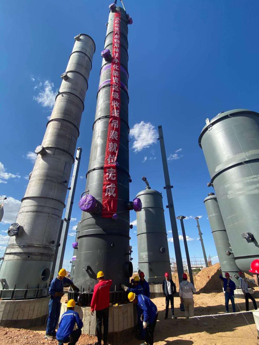 近日,公司承建的內(nèi)蒙古雅海LNG項目801A凈化裝置區(qū)吸收塔吊裝一次成功。