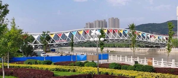 近日,公司承建的國內(nèi)現(xiàn)有跨度最大的人行景觀橋——甘泉橋(玄月橋)主體完工。