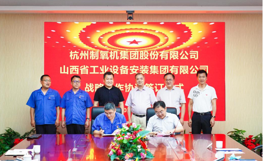 近日,公司與杭州制氧機集團股份有限公司簽訂戰(zhàn)略合作協(xié)議。杭氧集團黨委書記、董事長蔣明,公司黨委書記、董事長耿鵬鵬出席。