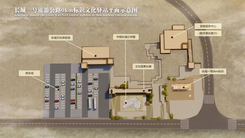 長(zhǎng)城一號(hào)旅游公路“0km”標(biāo)志文化驛站項(xiàng)目用地18畝,建設(shè)內(nèi)容包括長(zhǎng)城文化體驗(yàn)園、中國(guó)長(zhǎng)城地圖景觀、文化觀景長(zhǎng)廊、觀景臺(tái)、數(shù)字?jǐn)z影互動(dòng)平臺(tái)(最美長(zhǎng)城)、房車營(yíng)地營(yíng)位等。