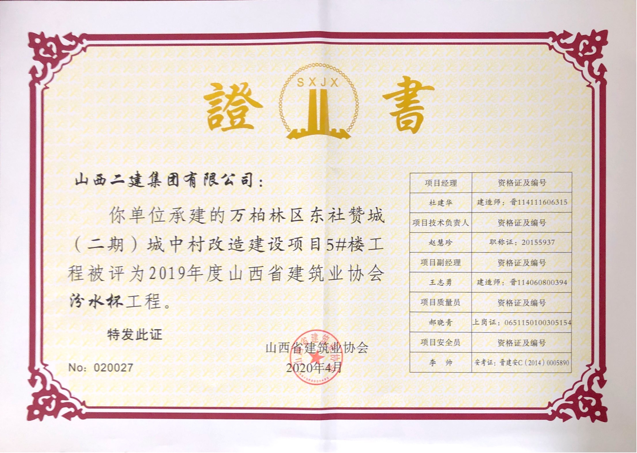 近日,山西省建筑業(yè)協(xié)會(huì)公布2019年度山西省建筑業(yè)協(xié)會(huì)“汾水杯”工程評(píng)價(jià)名單,由公司承建的5項(xiàng)工程榮獲“汾水杯”工程。這是公司首次同一年度獲得5項(xiàng)“汾水杯”,同時(shí)也是2019年度山西省獲得該榮譽(yù)最多的企業(yè)。