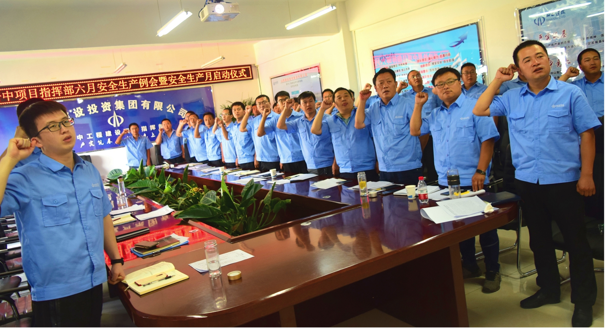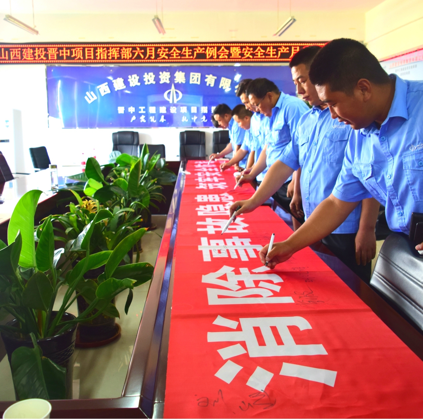 啟動(dòng)儀式上,宣讀了晉中指揮部“安全生產(chǎn)月”活動(dòng)方案;結(jié)合活動(dòng)主題,與會(huì)人員在印有“消除事故隱患,筑牢安全防線”的紅色條幅上進(jìn)行了集體簽名和“安全生產(chǎn)月”活動(dòng)宣誓。