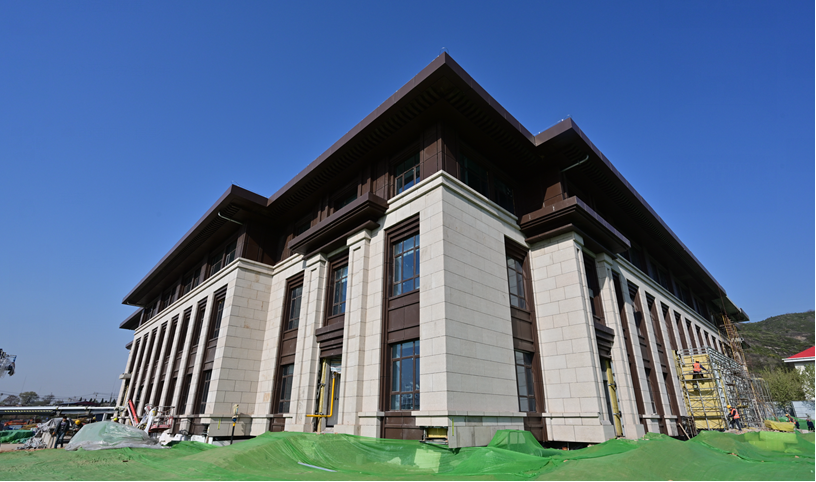 太原市廉政教育基地項(xiàng)目總建筑面積32121.84㎡,分為兩個(gè)單體工程,均為地下一層,地上三層,建筑總高度16.7m,辦案樓(14150.53㎡)為南、中、北三棟三層建筑通過(guò)連廊連接為一個(gè)整體,地下部分為談話區(qū)、會(huì)議室等,地上部分為辦公區(qū)。綜合樓(17971.31㎡)為回字形建筑,地下部分為地下車庫(kù)、洗衣中心及設(shè)備用房,地上部分為宿舍、辦公、服務(wù)人員用房。