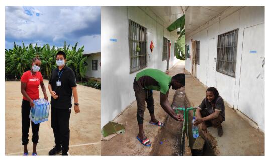 給當?shù)貑T工贈送純凈水開放營地水井供當?shù)貑T工取用