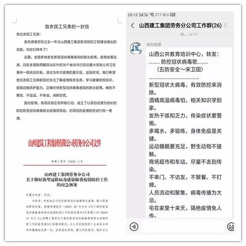 為科學有效地應對突發(fā)新型冠狀病毒肺炎疫情,最大限度降低危害,根據上級文件精神要求及部署,勞務分公司迅速反應,積極制定并實施《山西建工集團勞務分公司關于做好新型冠狀病毒肺炎疫情防控工作的應急預案》,成立應急預案小組及辦公室,明確任務、加強管控措施,建立健全臺賬,加強科室及項目部人員日常監(jiān)測及職工春節(jié)假期去向情況統(tǒng)計,全力摸排,準確摸清員工狀態(tài),做好返鄉(xiāng)職工心理疏導工作。同時,調整休假時間,通過微信等平臺宣傳發(fā)布正確疫情防控知識及措施,引導職工正確面對問題,不造謠、不信謠。面對疫情,勞務分公司積極響應公司倡議,開展特殊時期線上捐助工作,全體職工積極響應,截止目前累計捐款2900元。