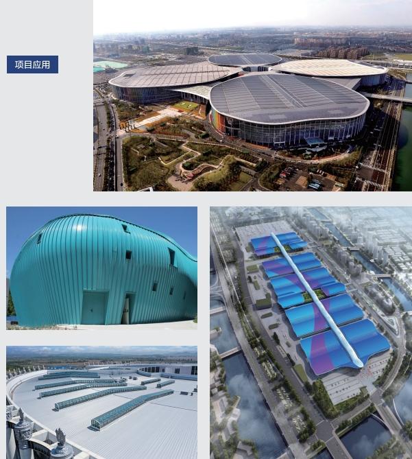 鋁鎂錳屋面是以鋁鎂錳合金為原材壓制的特殊屋面系統(tǒng),具有使用壽命長、環(huán)保美觀、安裝方便快捷、耐腐蝕、重量輕、強(qiáng)度大、容易加工成型等優(yōu)點(diǎn),同時(shí)可結(jié)合沖孔吸音構(gòu)造實(shí)現(xiàn)較高要求的建筑功能,且可通過正反彎弧、扇形板等特殊加工方式實(shí)現(xiàn)復(fù)雜曲面效果,廣泛應(yīng)用于機(jī)場航站樓、飛機(jī)維修庫、車站及大型交通樞紐、會議及展覽中心、體育場館、展示廳、大型公共娛樂設(shè)施、公共服務(wù)建筑、大型購物中心、商業(yè)設(shè)施、民用住宅等建筑。
