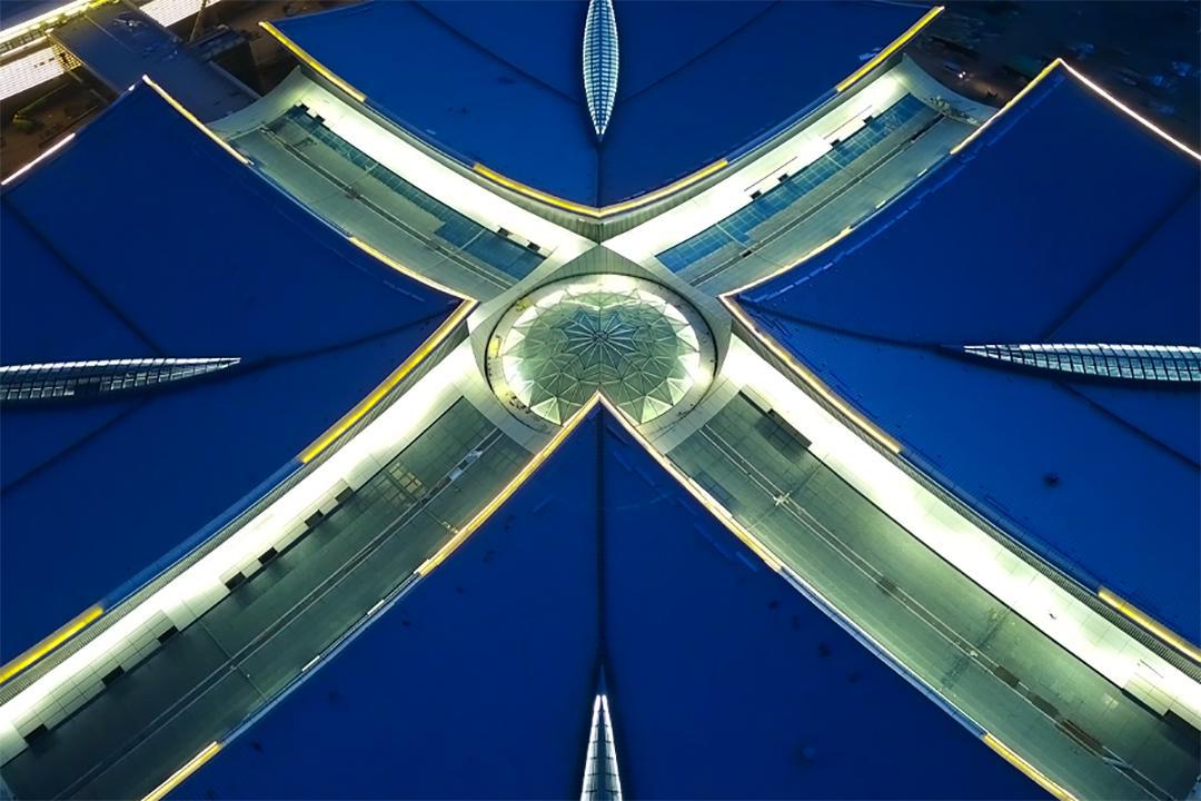 俯瞰瀟河國際會展中心中間組團(tuán)項(xiàng)目鋼結(jié)構(gòu)示意圖
