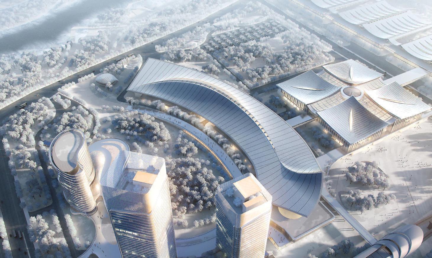 瀟河國際會展中心南側(cè)組團(tuán)項目位于山西轉(zhuǎn)型綜改示范區(qū),總建筑面積65035.09平方米,主要功能為登陸廳(二層長廊)、多功能展廳、會議、洽談、辦公等。地基采用強(qiáng)夯處理地基,基礎(chǔ)形式為PHC預(yù)應(yīng)力管樁加獨立承臺基礎(chǔ),地上為鋼框架結(jié)構(gòu),會展部分屋面采用管橋架結(jié)構(gòu),大跨屋面采用變截面弧形平面鋼構(gòu)架,展廳屋蓋長向約211米,短向約106米,主架間用縱向平面架、鋼拉桿交叉支撐組成屋面縱向及橫向水平支撐。結(jié)構(gòu)局部柱間設(shè)置柱間支撐。屋面凜條采用矩形方鋼管。會議屋面采用網(wǎng)架結(jié)構(gòu),屋面采用變截面弧形網(wǎng)架結(jié)構(gòu)跨度63米(最大),結(jié)構(gòu)最高點29米。鋼網(wǎng)架采用抗震球形鋼支座較接于鋼管混凝土柱頂。