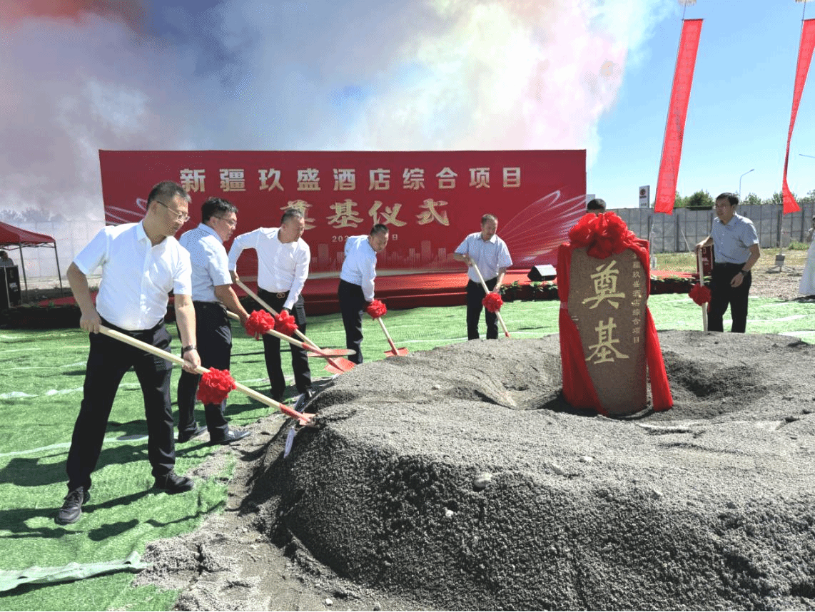 隨后,大家共同為新疆玖盛酒店綜合項(xiàng)目培土奠基。