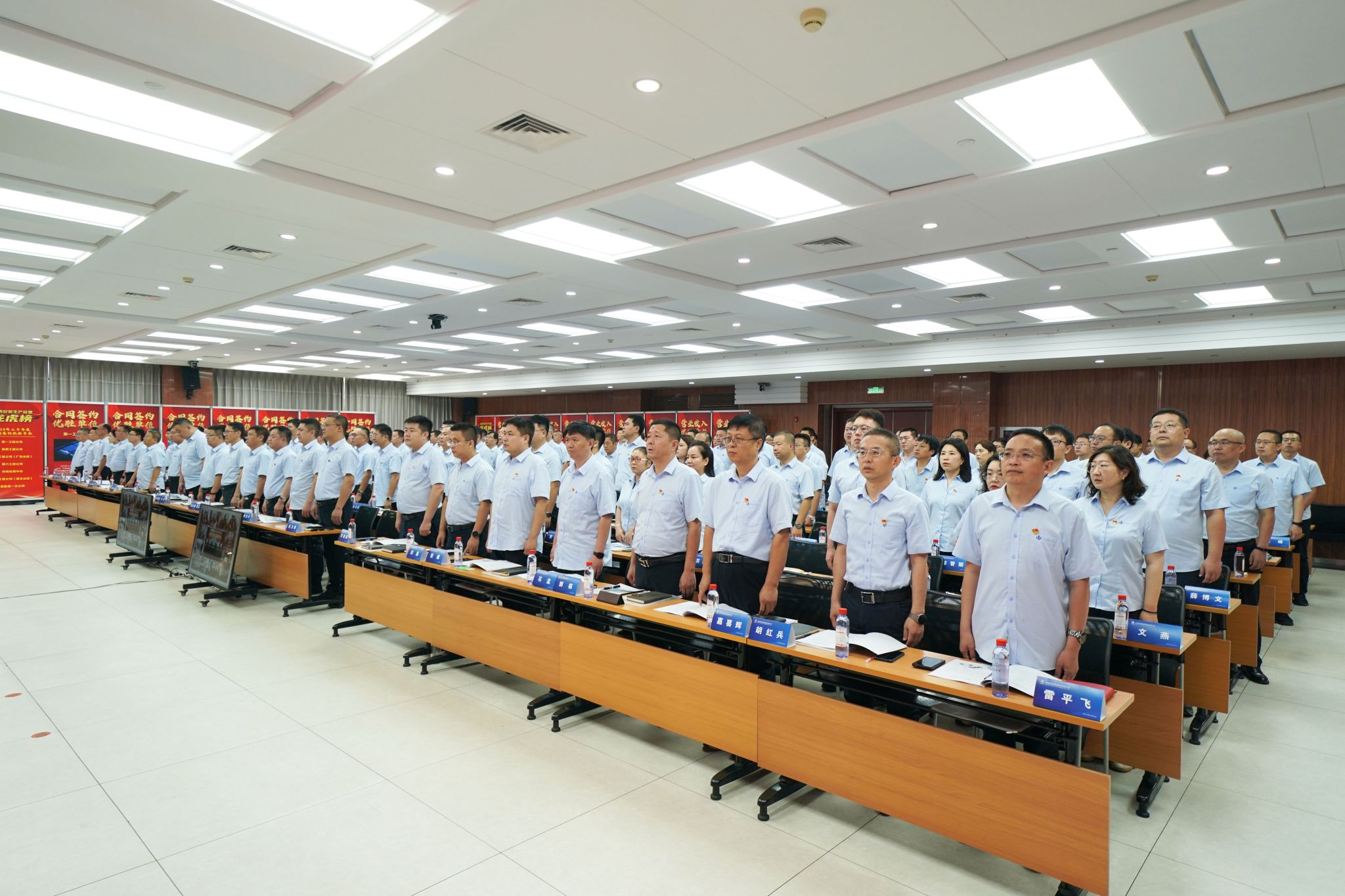 安裝集團(tuán)領(lǐng)導(dǎo)、各部門、各事業(yè)部正副職及各工程(子)公司班子成員等260余人通過“現(xiàn)場+視頻”的方式參加會議。