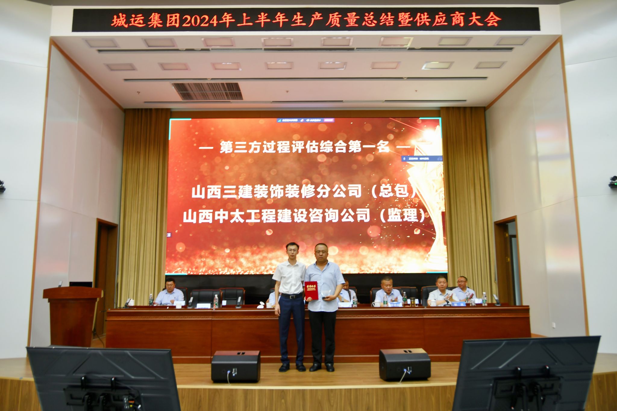 7月17日,山西建投城市運(yùn)營集團(tuán)召開2024年上半年生產(chǎn)質(zhì)量總結(jié)暨供應(yīng)商大會(huì)。華廈咨詢公司所屬中太咨詢子公司獲評(píng)第三方過程評(píng)估綜合第一名(監(jiān)理),華奧項(xiàng)目營運(yùn)中心、晉南區(qū)域項(xiàng)目營運(yùn)中心獲評(píng)A類優(yōu)秀供應(yīng)商。