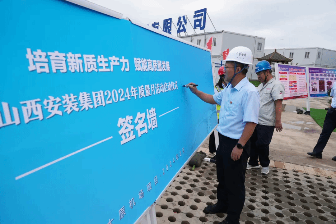 9月1日,山西建投安裝集團在太原武宿國際機場三期改擴建工程機電安裝項目部舉辦2024年“質(zhì)量月”活動啟動儀式。黨委副書記、副董事長、總經(jīng)理任銳出席并作動員講話??偣こ處熈翰ǎ轿魇〗ㄔO(shè)監(jiān)理有限公司項目總監(jiān)代表王樹林,各基層單位相關(guān)負責(zé)人、項目部及勞務(wù)人員代表等110余人參加啟動儀式。