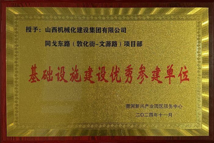 近日,山西建投機械化集團獲評同戈東路(敦化街—文源路)項目“基礎(chǔ)設(shè)施建設(shè)優(yōu)秀參建單位”稱號,并收到甲方寄來的表揚信。