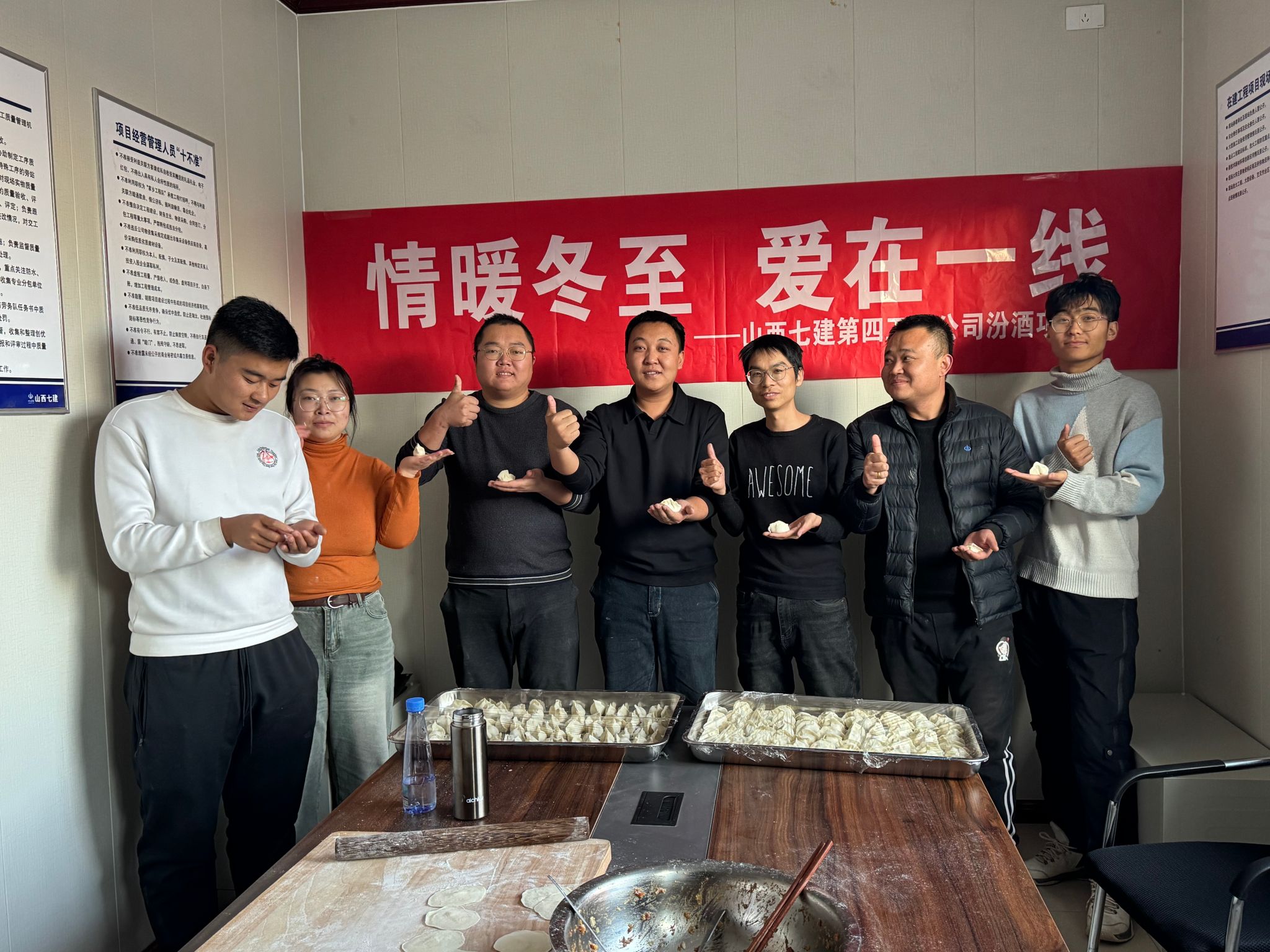 冬至?xí)r節(jié),山西建投七建集團(tuán)所屬各單位組織開(kāi)展“圍爐話冬至 共勞暖人心”包餃子活動(dòng),各分公司及項(xiàng)目部職工積極參與。