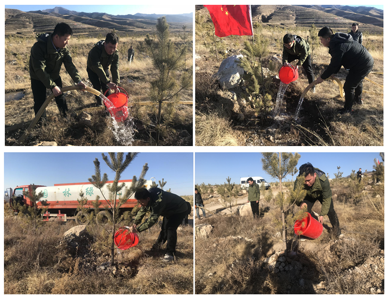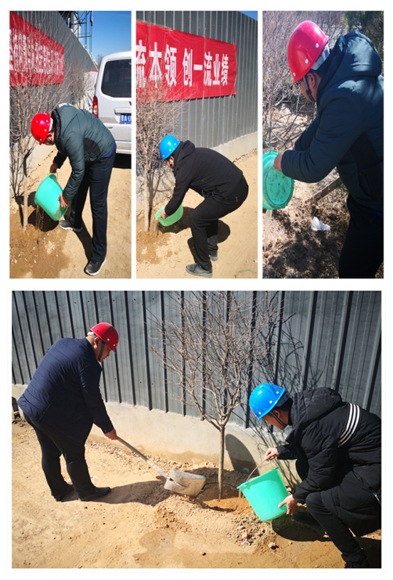 在朔州市紫金山自然保護區(qū),項目部人員個個熱情高漲,從車上拿下鐵鍬、水桶等工具,在工人師傅的指導下,為樹木培土,為樹木澆水,讓每一棵樹木都在春風中隨風飄迎。