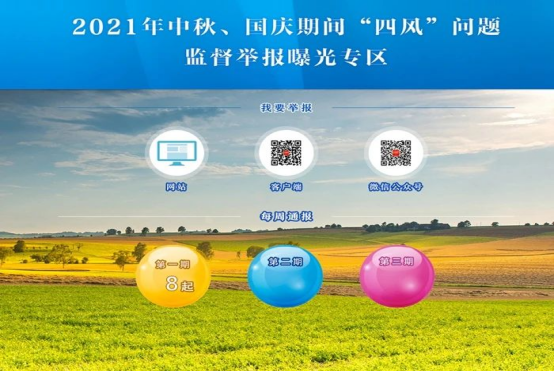 為鍥而不舍落實中央八項規(guī)定及其實施細則精神,中央紀委國家監(jiān)委網(wǎng)站推出“中秋、國慶期間‘四風’問題監(jiān)督舉報曝光專區(qū)”,暢通監(jiān)督渠道,加大典型案例通報曝光力度,增強警示震懾和教育引導作用。專區(qū)開設“我要舉報”窗口,鏈接中央紀委國家監(jiān)委統(tǒng)一舉報平臺,歡迎網(wǎng)友通過網(wǎng)站、手機客戶端和微信公眾號對節(jié)日期間違規(guī)吃喝送禮等問題進行舉報。專區(qū)“每周通報”欄目將從9月22日起,分3次集中對各地查處的“四風”典型問題點名道姓通報曝光,以風清氣正的節(jié)日氛圍助力構建清正廉潔的政治生態(tài)。