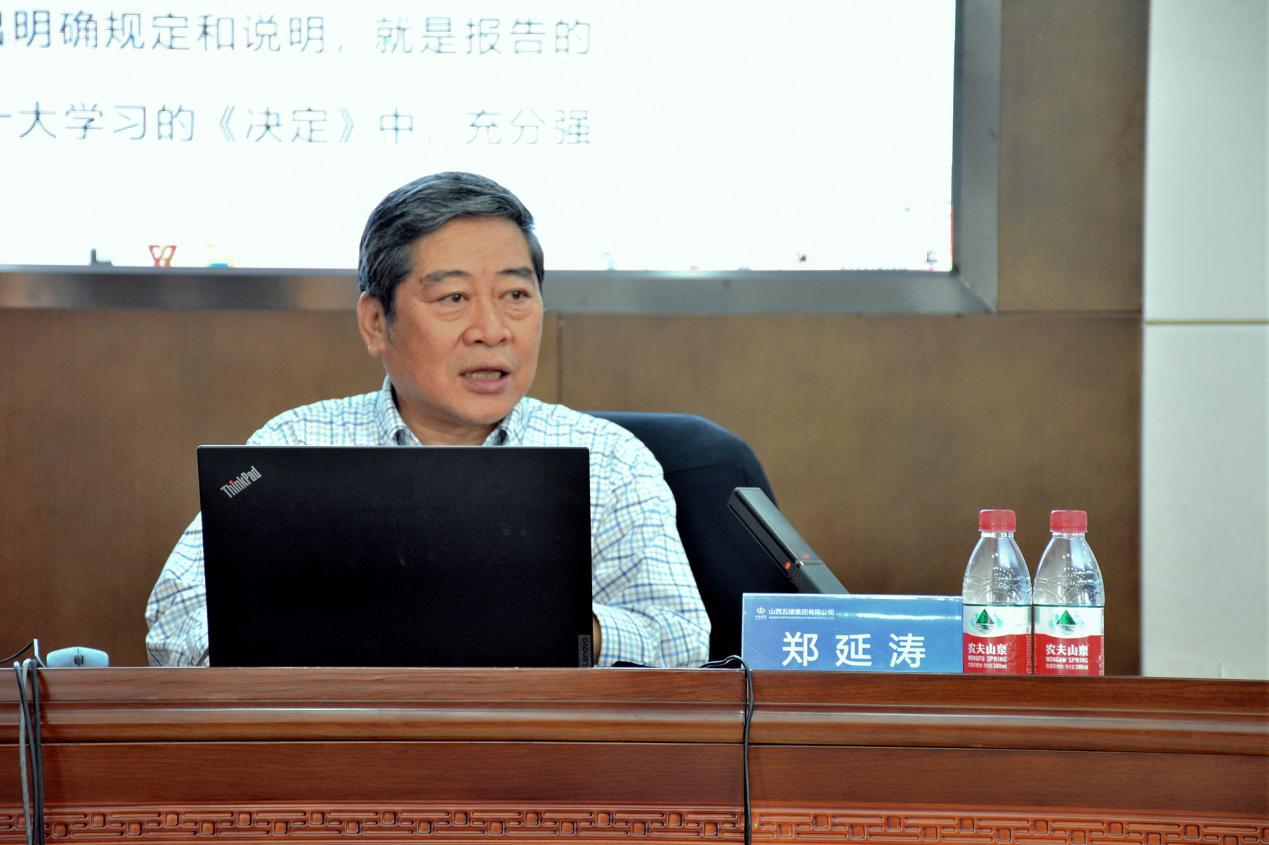 培訓(xùn)邀請山西省委黨校、山西省行政學院鄭延濤教授,從解讀新時代新征程中國共產(chǎn)黨的使命任務(wù)切入,重點講授了什么是“中國式現(xiàn)代化”、全黨深入開展學習貫徹習近平新時代中國特色社會主義思想主題教育對國企改革發(fā)展的要求、“中國式現(xiàn)代化”與國企改革發(fā)展的關(guān)系等內(nèi)容,既有政治高度、理論深度,又貼近工作、結(jié)合實際,具有指導(dǎo)意義。