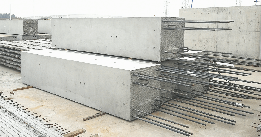 園區(qū)可生產(chǎn)預(yù)制混凝土柱、疊合梁、夾芯保溫外墻板、樓梯、預(yù)應(yīng)力混凝土疊合板等14種PC建筑類構(gòu)件,具有尺寸精度高、觀感質(zhì)量好、施工安裝快、環(huán)境污染少等優(yōu)點。