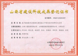 山西省建設(shè)科技成果登記重大成果(一等)